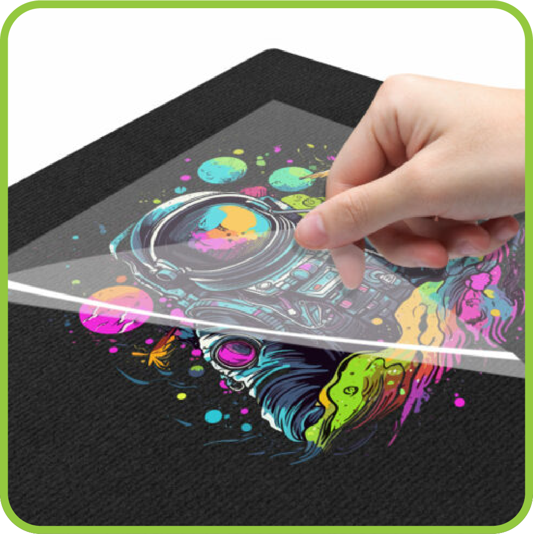 Vivid full color transfers that feel as good as they look! Our transfers are not shiny, thick, and plastic feeling. They feel amazing on the garment, making your products stand out.